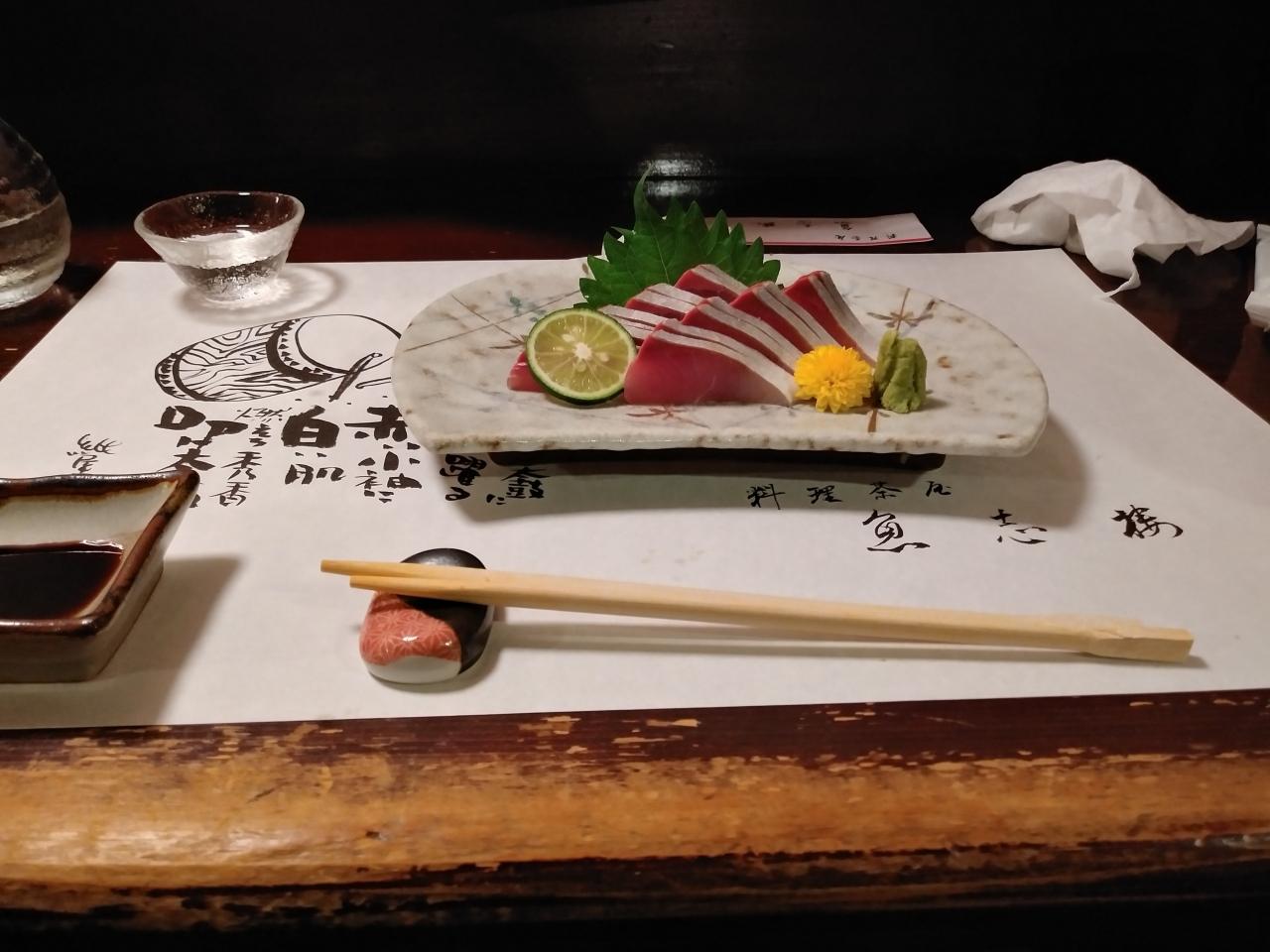この日の夕食は、口コミと旅館のマスターの超絶お奨めということで、昔の芸者小屋を改装した割烹「魚志楼」にて。
