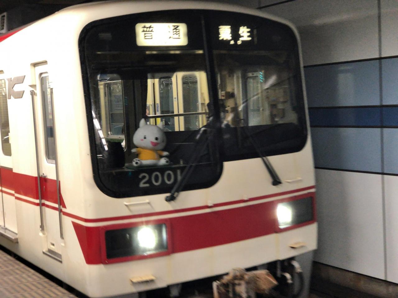 運転席横には、神戸電鉄のゆるキャラ、しんちゃんが座っています。