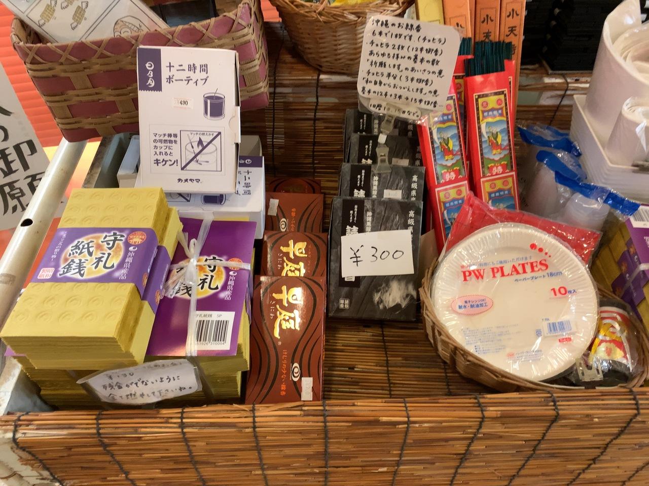 お盆の時期は過ぎていますが、法事などで使われるカラフルなお菓子がずらりと並んでいた店。