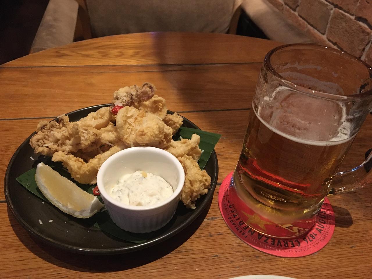 メニューを見ながら悩んでいる間にビール一杯飲んでしまった挙句頼んだのがイカフライ・・・ -