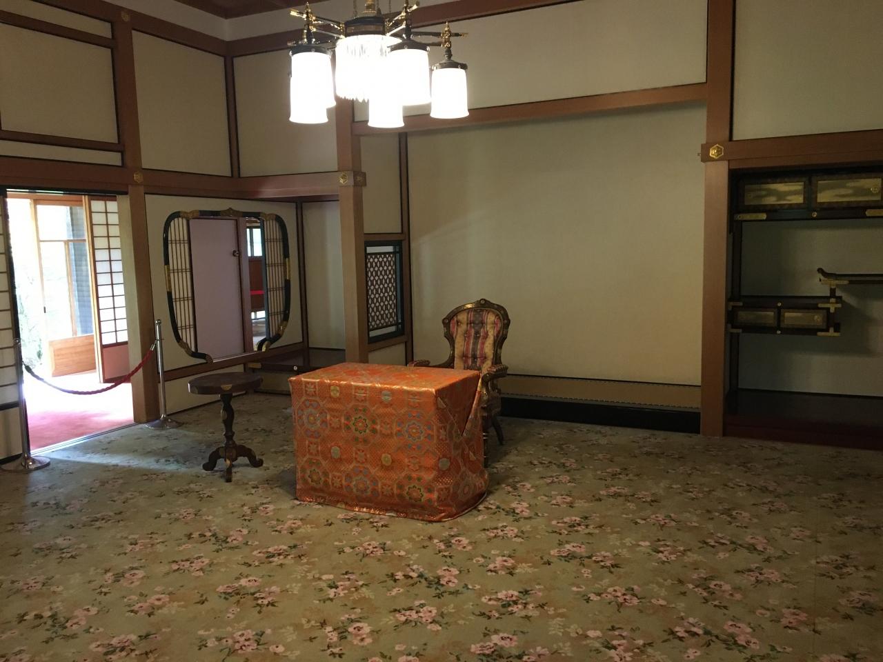 天皇はお客様を迎える際、椅子の横に立ち決してお座りにならないそう。日光田母沢御用邸記念公園 名所・史跡