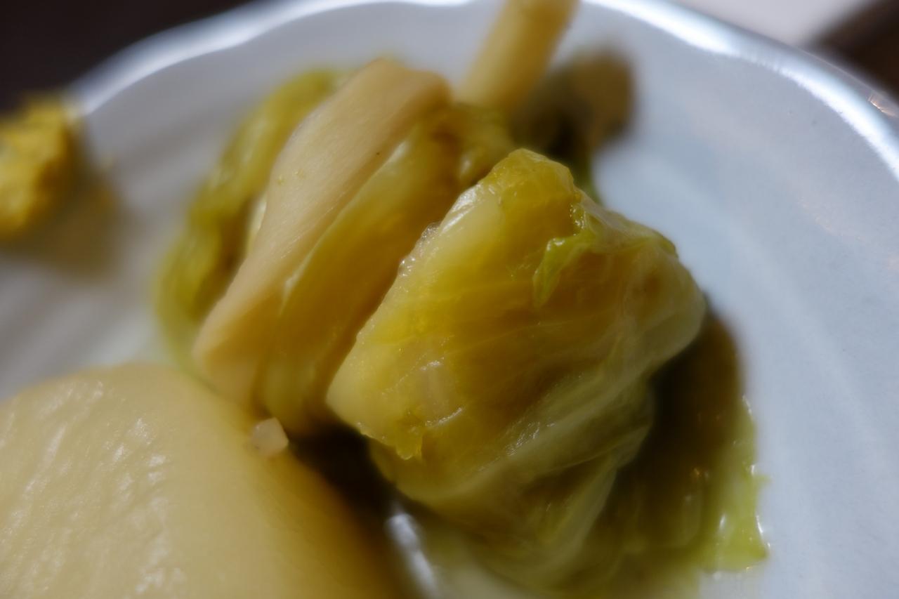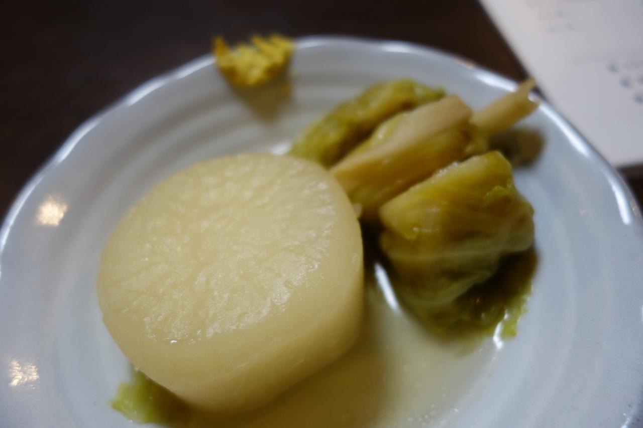 おでん屋さんですから、おでん頼んでます。先ずは大根とロールキャベツ。すぐに到着です。