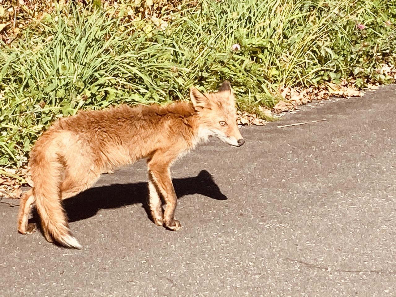帰り道にキタキツネ。また子どもだな。