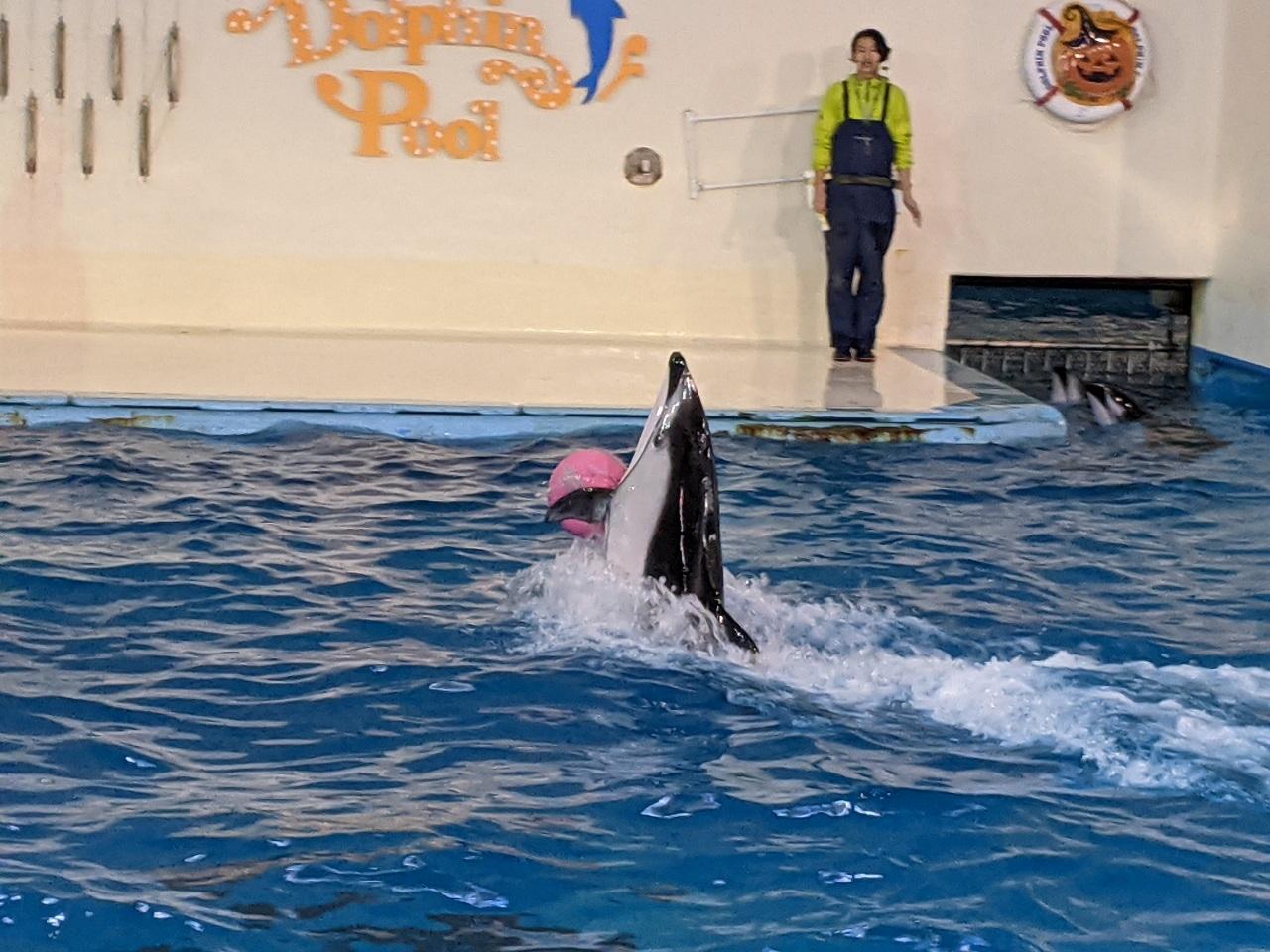 次の催し物まで時間があったので、イルカ館でカマイルカを眺めます。