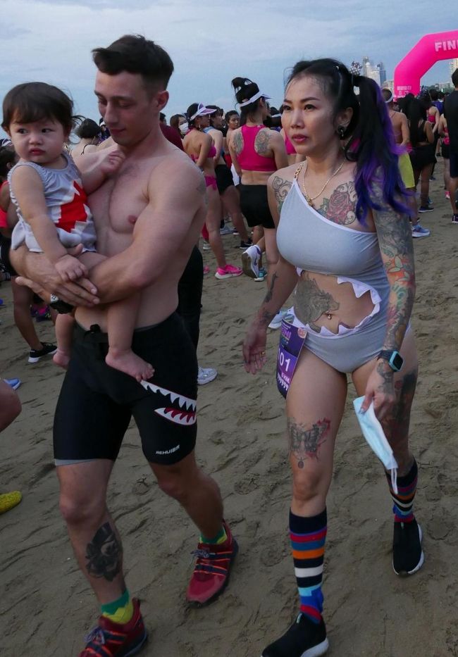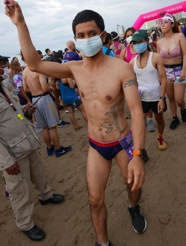 おっと巨乳だ!...これがビキニマラソンだ!...刺青+