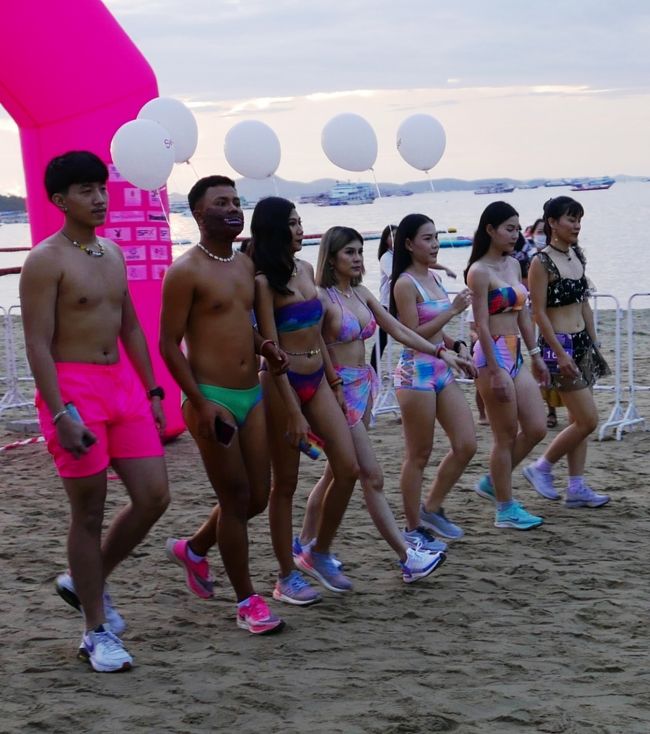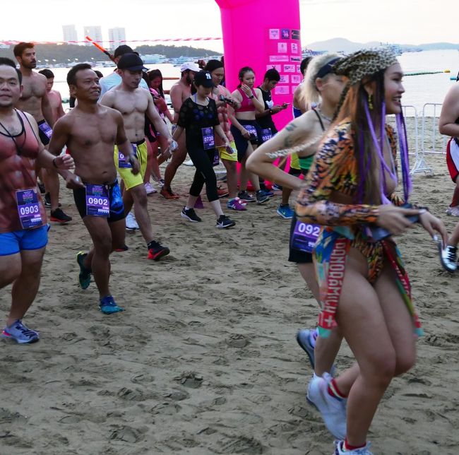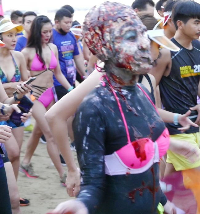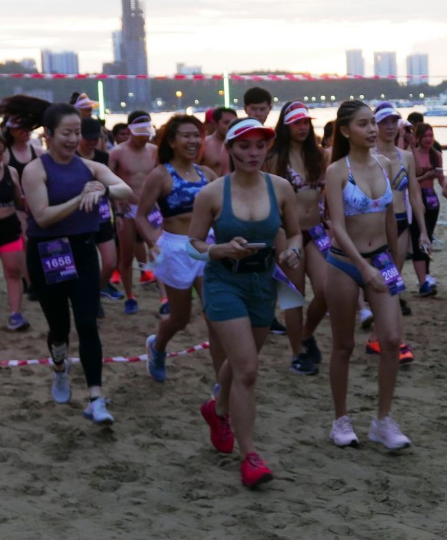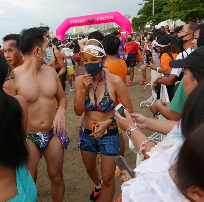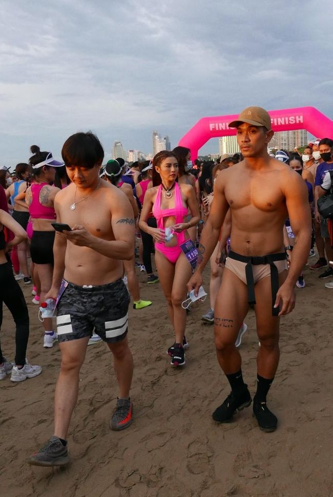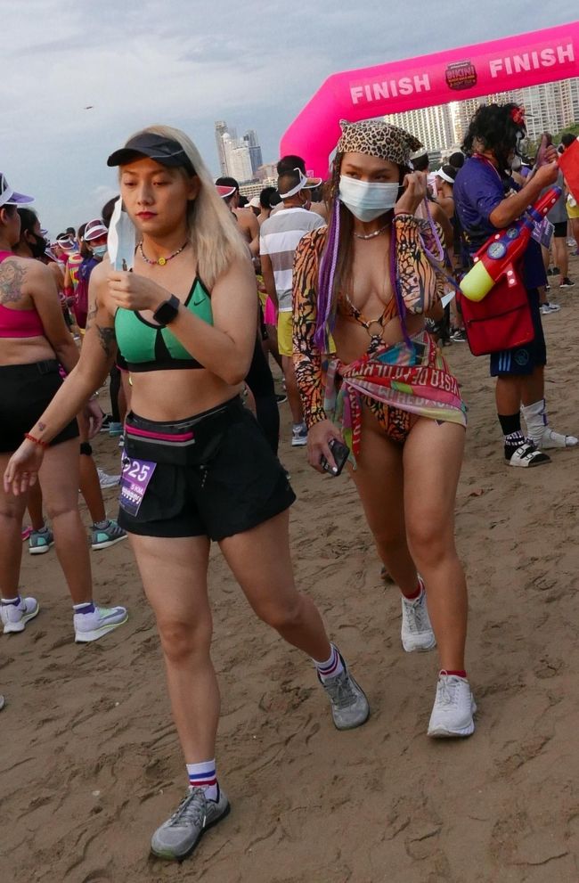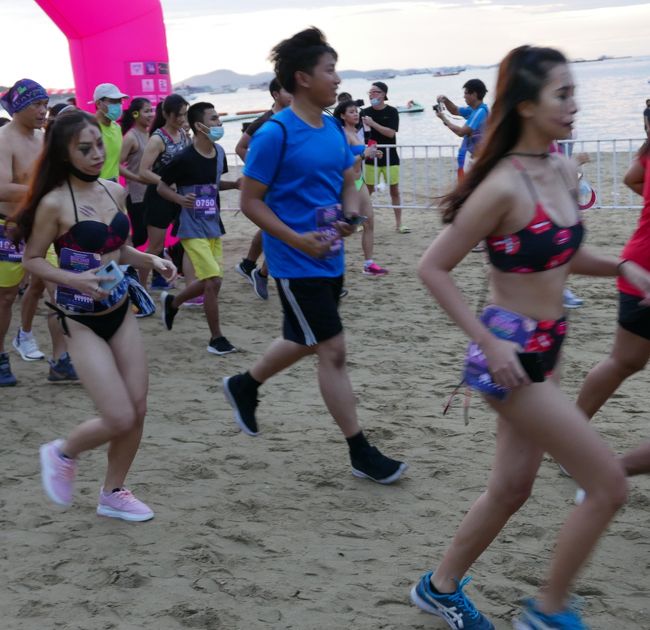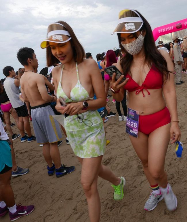 おっと巨乳だ!...これがビキニマラソンだ!...走ると揺れるだろうな!