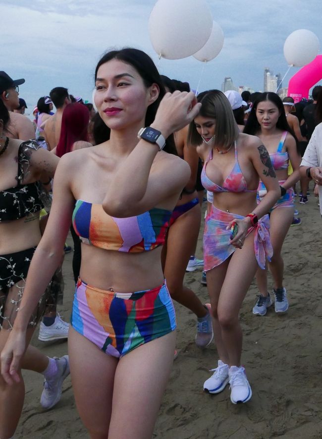 おっと巨乳だ!シリコンか?...これがビキニマラソンだ!...スタイルもグッド