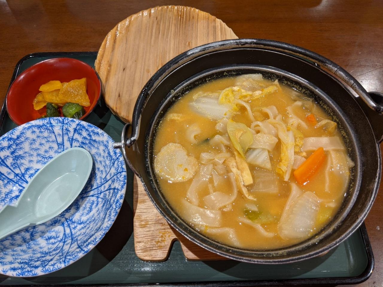 人気チェーン店小作で昨日食べたほうとうと比べるとそりゃ劣るが、