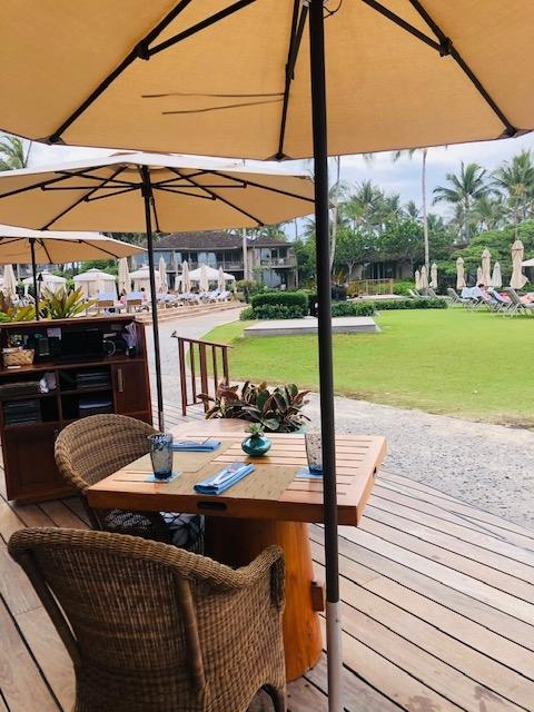 フォーシーズンズ・リゾート・フアラライのメインダイニングになっているウル・オーシャングリル&寿司ラウンジは海沿いにあります。