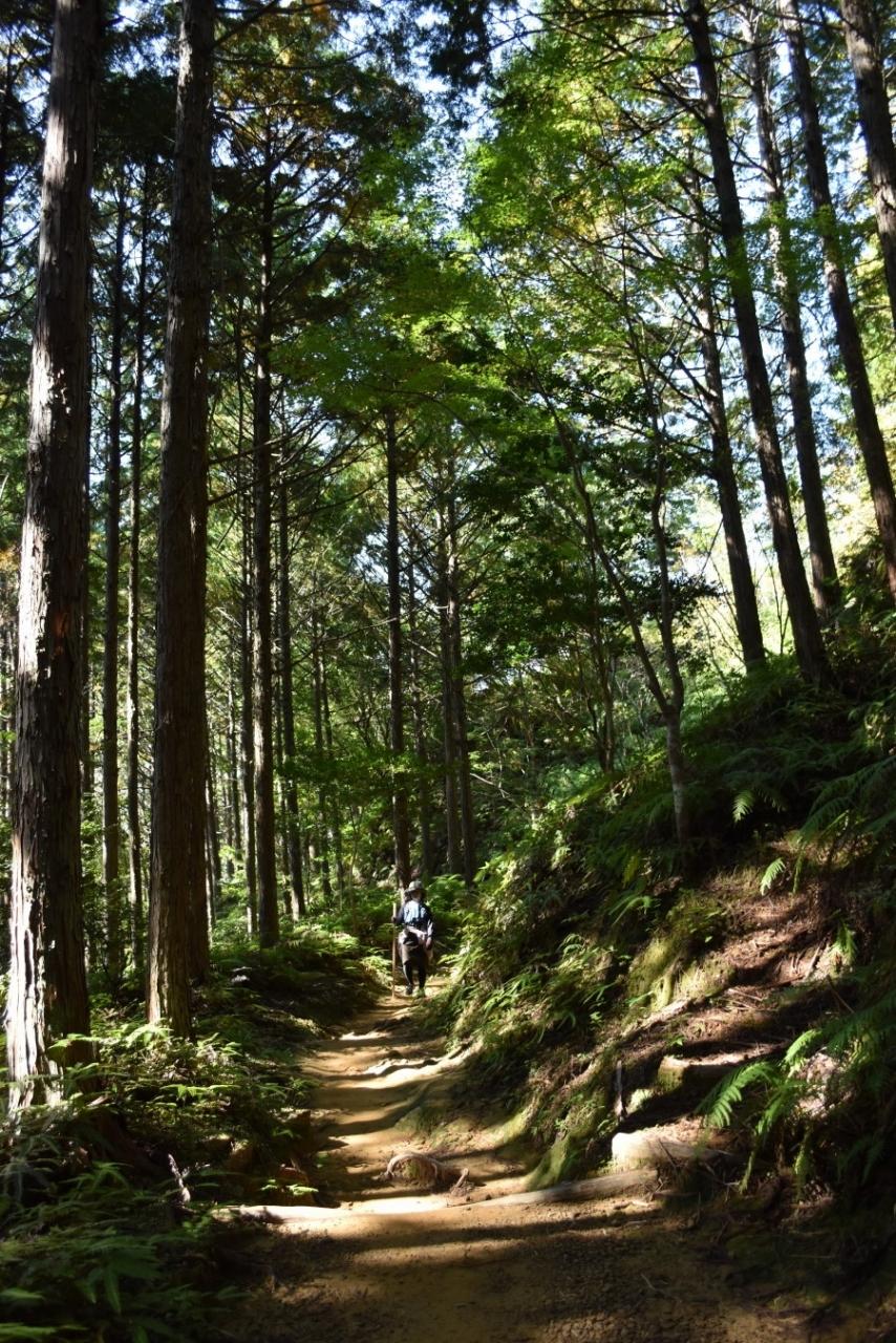 昨日歩いた高野坂とは異なり、人工林が続きます。 -