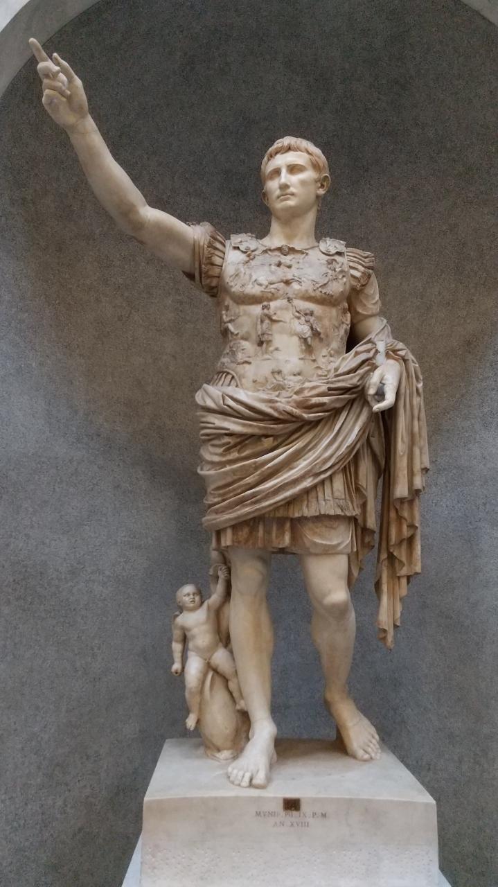 これは世界史の教科書に載っているオクタヴィアヌス(ローマ帝国初代皇帝)の石像です。他の石像と並べて置かれているので、注意しないと見落としてしまいます。