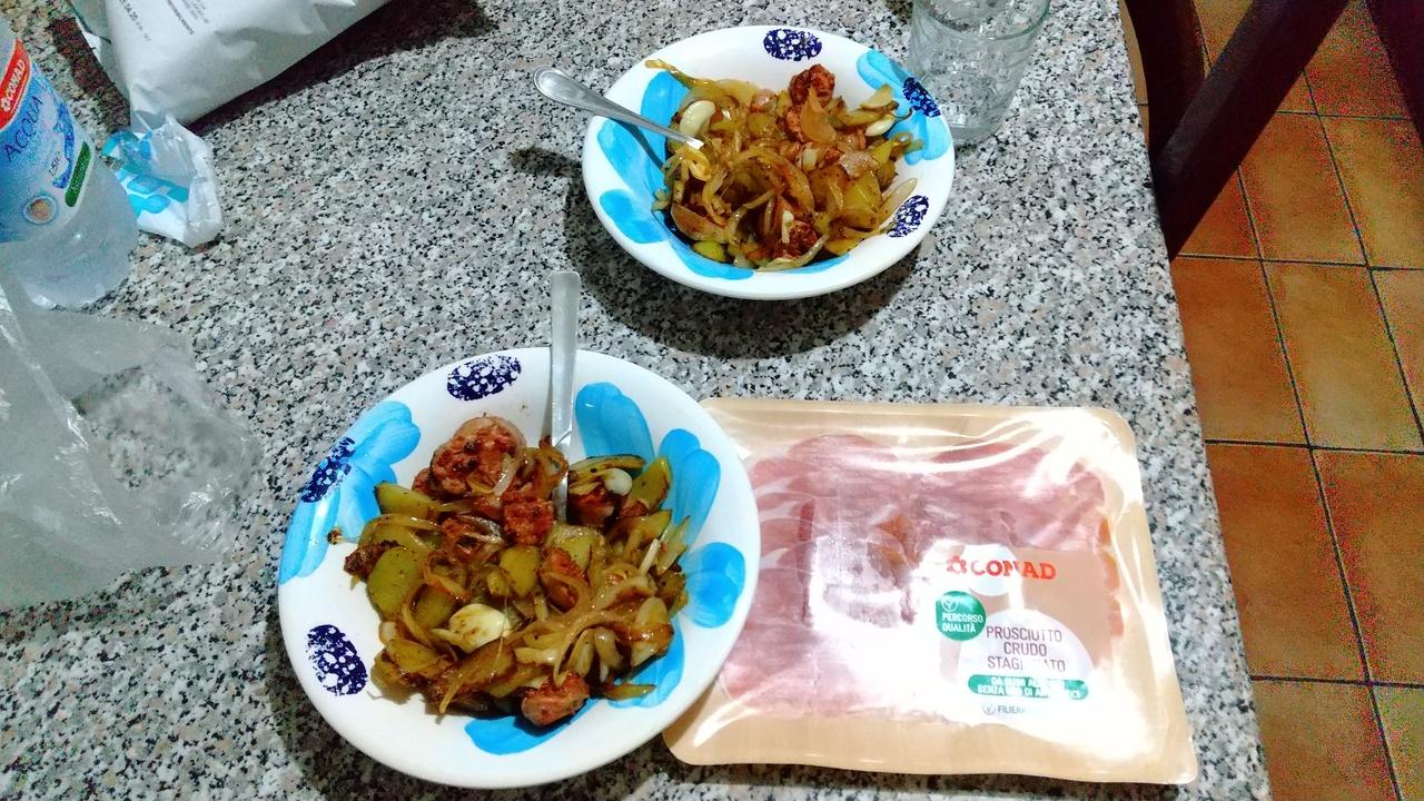 夕食は自炊しました。ジャーマンポテトと生ハムを食べました。ヨーロッパのソーセージはぎっしり肉が詰められていて、食べ応えがありました。