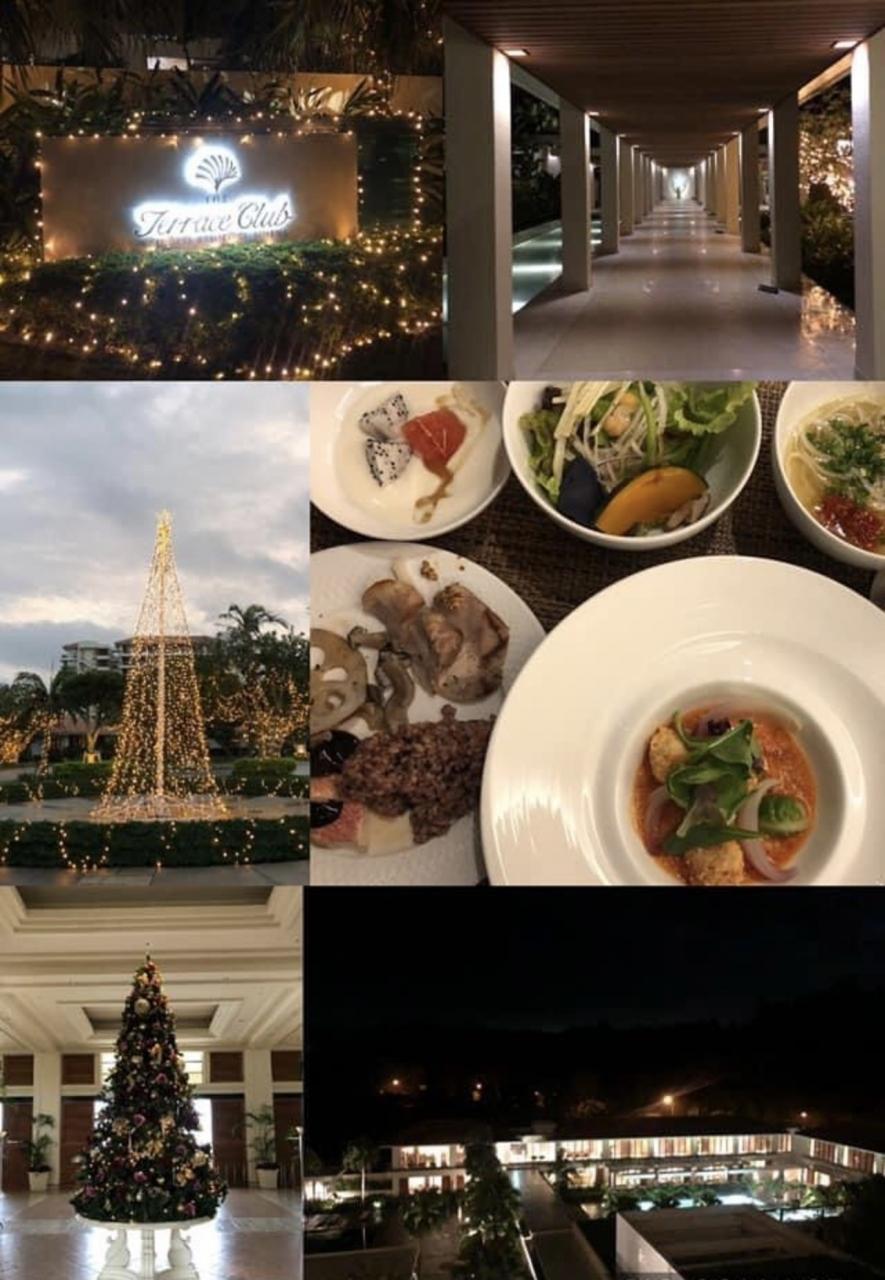 右下:宿泊した部屋からの眺め。真ん中右のブルーに照らされているのはタラソプール。水温33~34度の海水プールで、ガチ泳ぎはできないが、水流に揉まれたり、広めのプールでストレッチやウォーキングは可能。ザ ブセナテラス 宿・ホテル