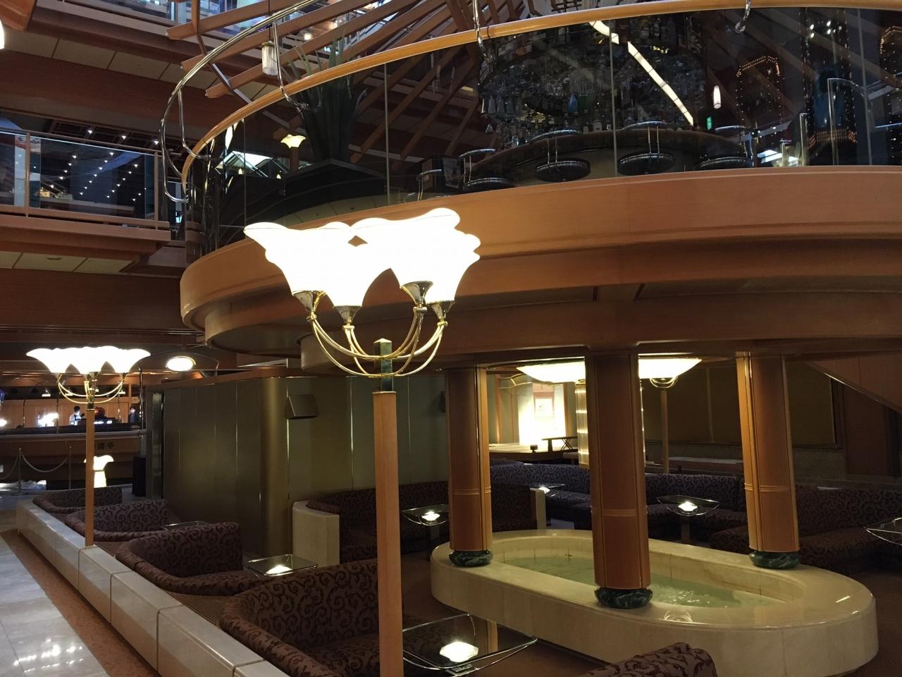ロビーの雰囲気が、豪華クルーズ船の内部を彷彿とさせます。デジャブ―。 -