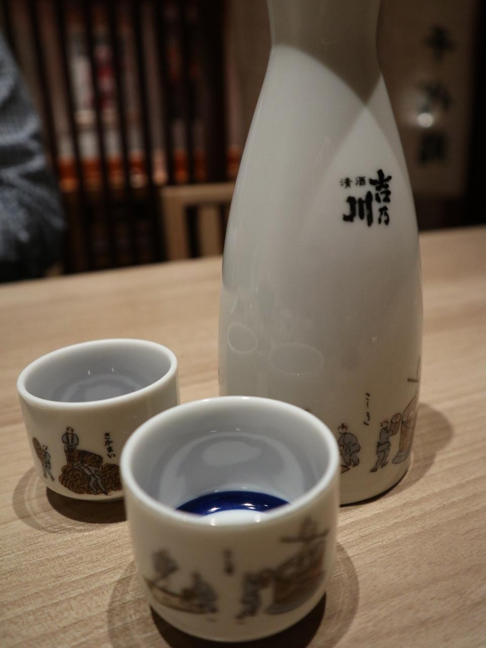 日本酒のラインナップ、以前より充実。村祐と高千代を1合ずつ。