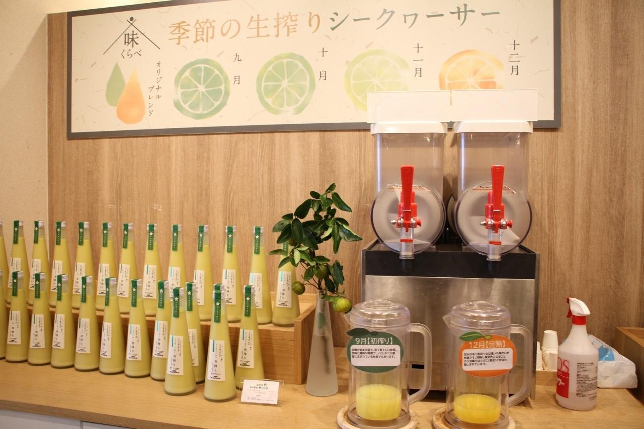 ~このコーナーでは、2種類のシークァーサージュースを試飲できます~