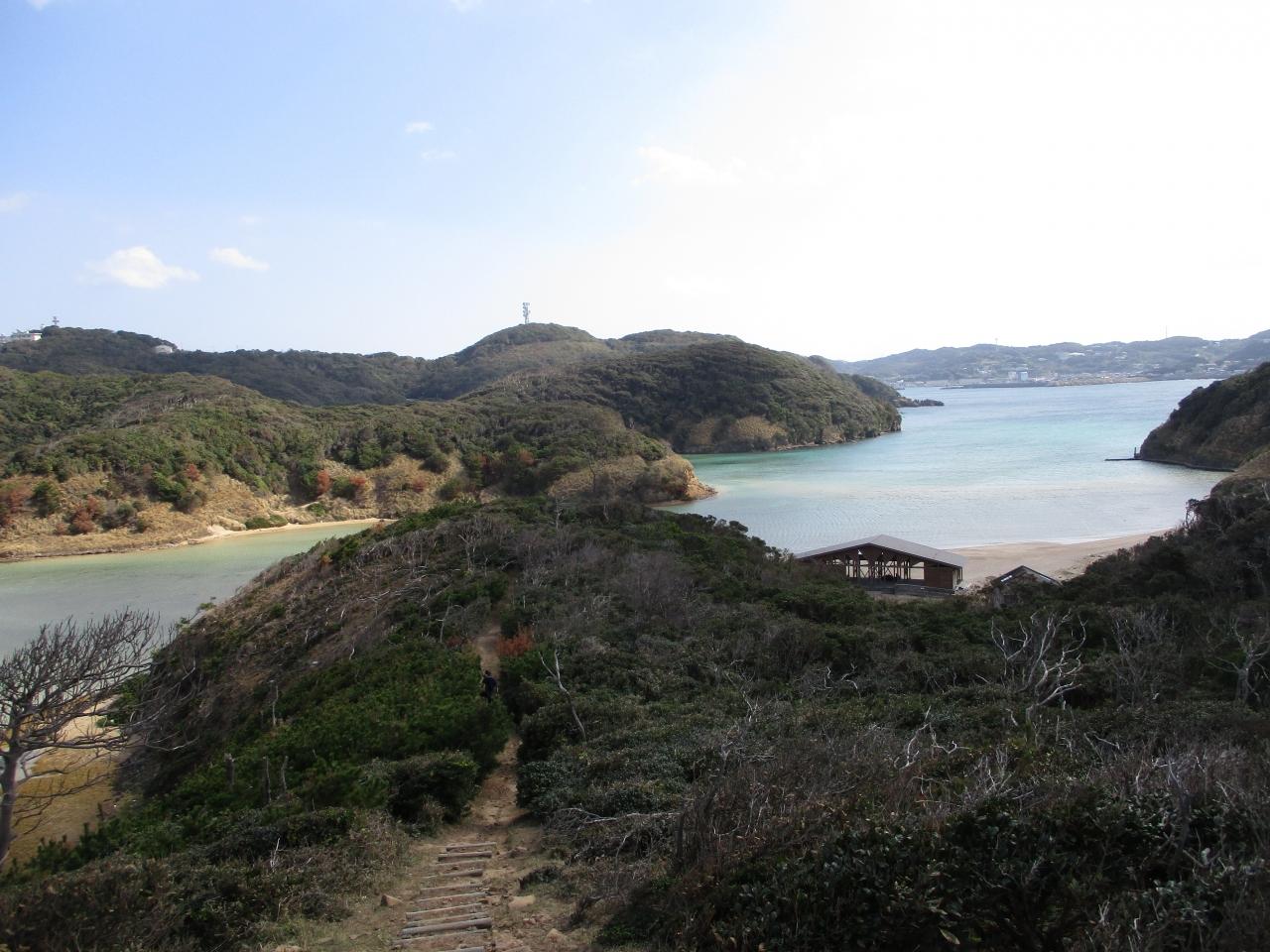 遊歩道から辰ノ島の渡船発着場を振り返ったところ。
