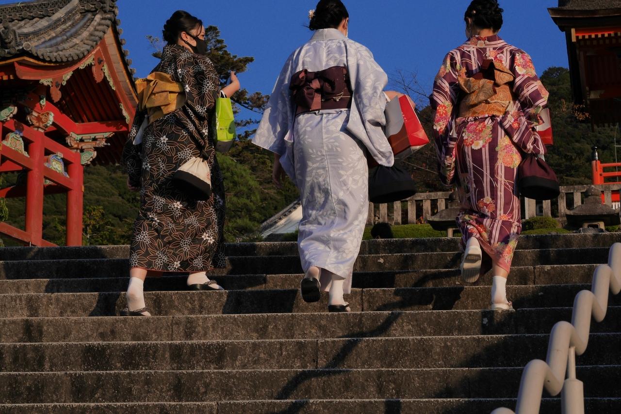 着物を着た女性が目立つ。