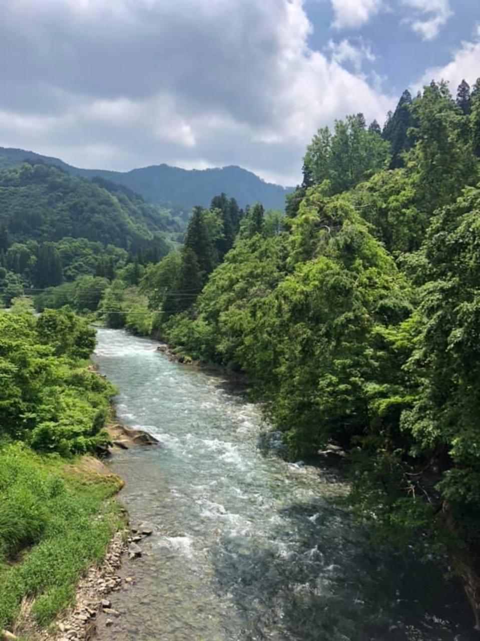 清津峡渓谷トンネル第二駐車場付近の川の流れ。