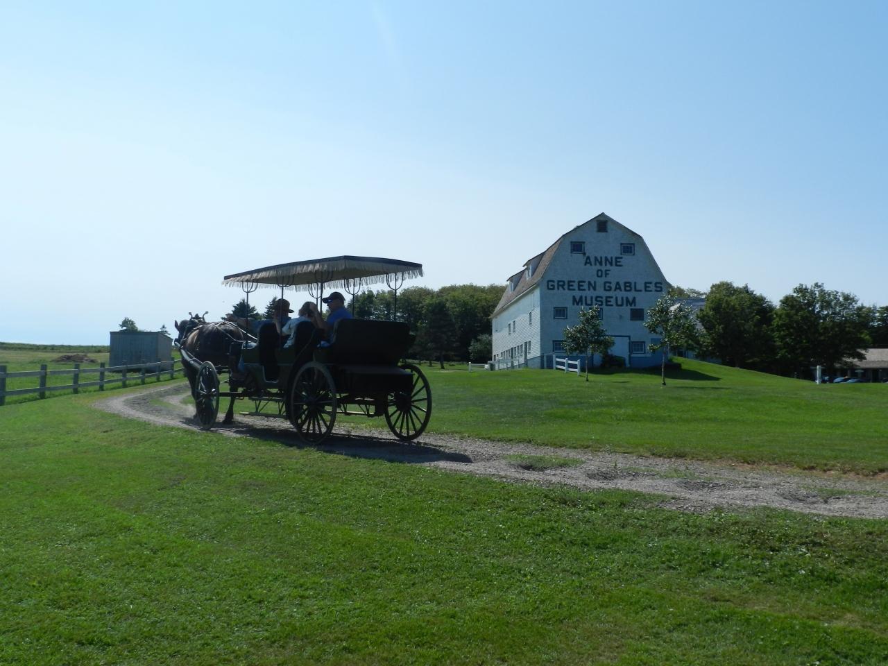 「グリーンゲイブルズ博物館」の敷地を歩いていると、馬車がやって来ました。
