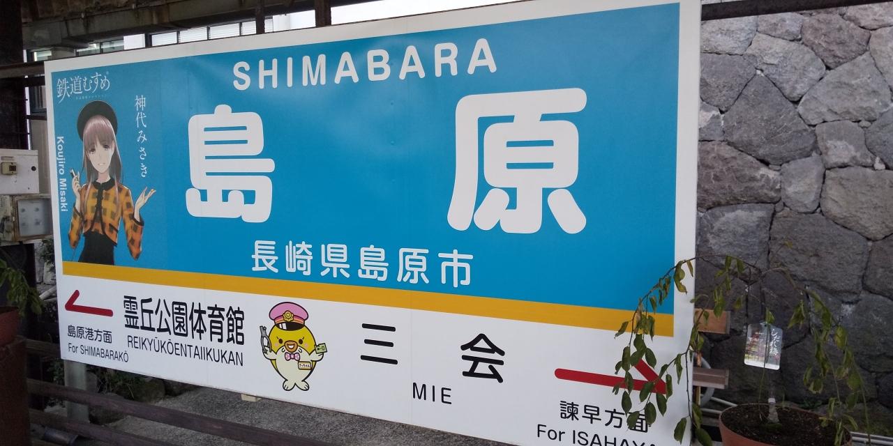 駅名標には島原鉄道のイメージキャラクターと思われる