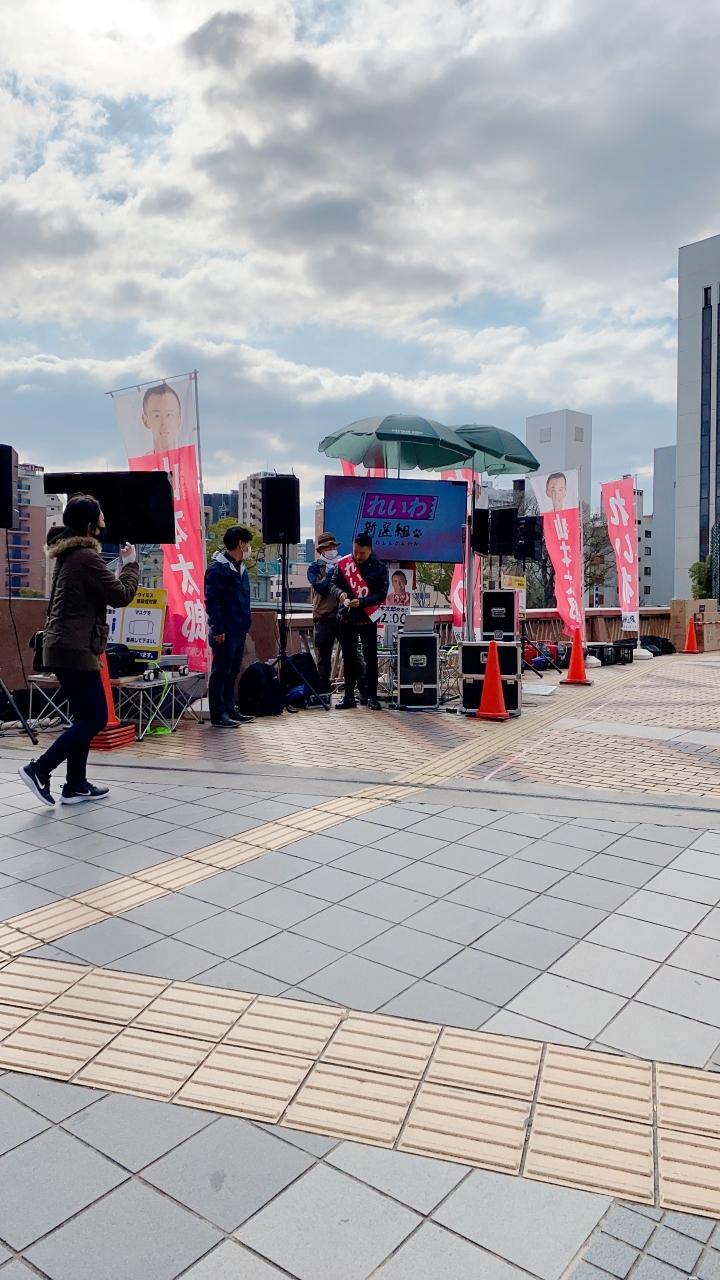 そしたら、れいわののぼりがあり、演説が始まりそうな雰囲気。信号待ちしてたら前から山本太郎が歩いてきたので、1分だけ見ることに。