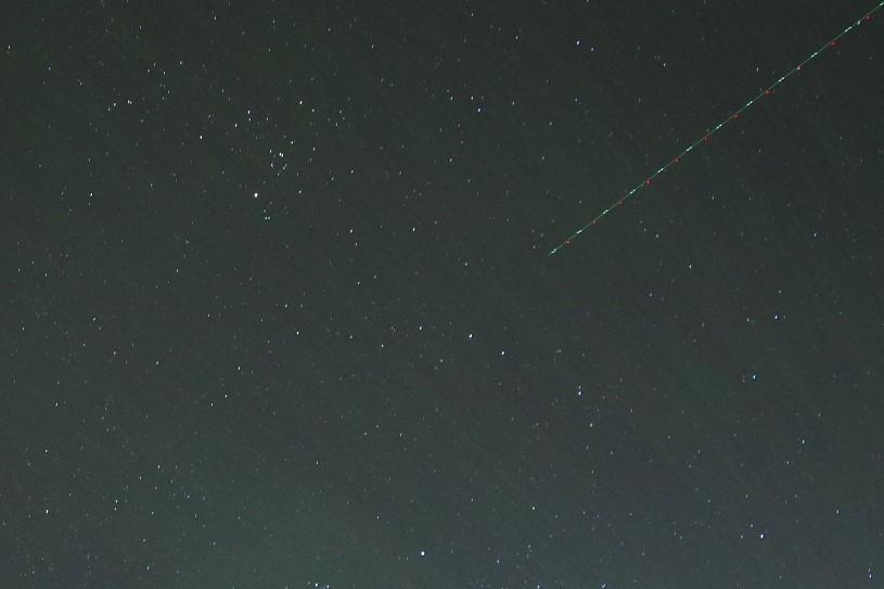 画面右上から流星。テラスは低温なのでカメラのバッテリーの消耗が激しく。