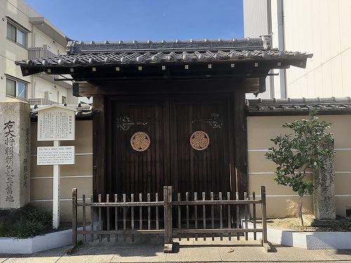 誓願寺の門に掲げられた家紋にも注目してください。 -