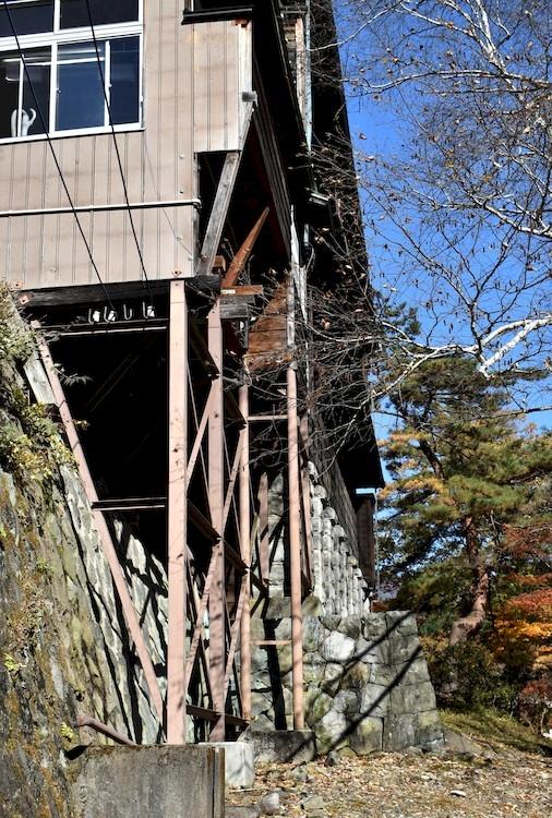 建物は敷地が渡良瀬川方面に下がっている為石積みの懸造りが見えました。