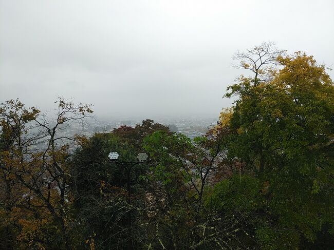 真下の黄色の紅葉と街のパノラマのコラボ、天気が良ければもっと美しいですね!天気が悪くても中々良い眺めです。