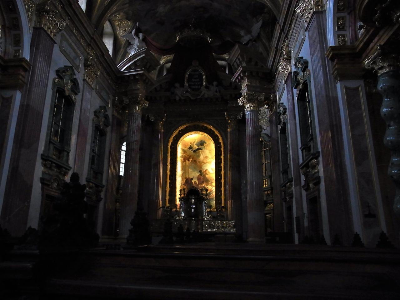 不思議なことに当時の「地球の歩き方」には、この地域は白紙状態で、なにも地図に記載されていない。なにか理由があって、わざとであろうと思うしかない。1631年創建のすばらしい教会で、教会に隣接する風格ある大学の建物は、宗教改革者ツヴィングリやライプニッツなどがいたところだ。教会自体がUniversitatskircheとも呼ばれているが、古いウィーン大学の一角だ。(イエズス会はオーストリア皇帝が追放した時期もあるようだ。)