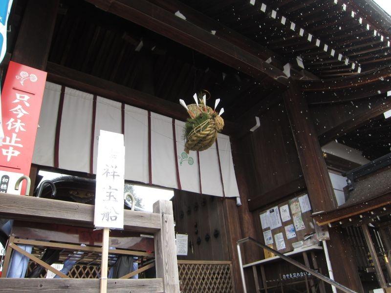 年末に関西に用事がありましたので少し足を延ばして京都に行きました。京都のお寺や神社は修学旅行の時とかにいろいろと訪れていますので今回はまだ行ったことがないところに行きました。雪の降る寒い日でしたので半日の予定で上賀茂神社と龍安寺と八坂神社を目的地に選びました。バスの一日券を使ってバスで3か所のお寺と神社を廻りました。偶然ですが葵祭と祇園祭の神社を廻ることになりました。