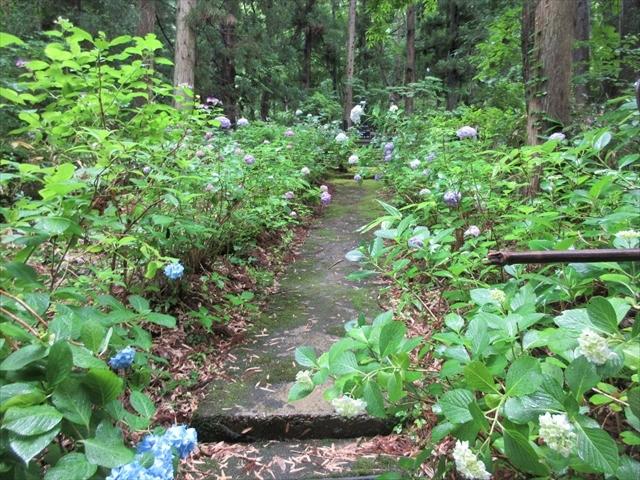 石段が隠れるくらいアジサイが咲いているので,結構濡れました.