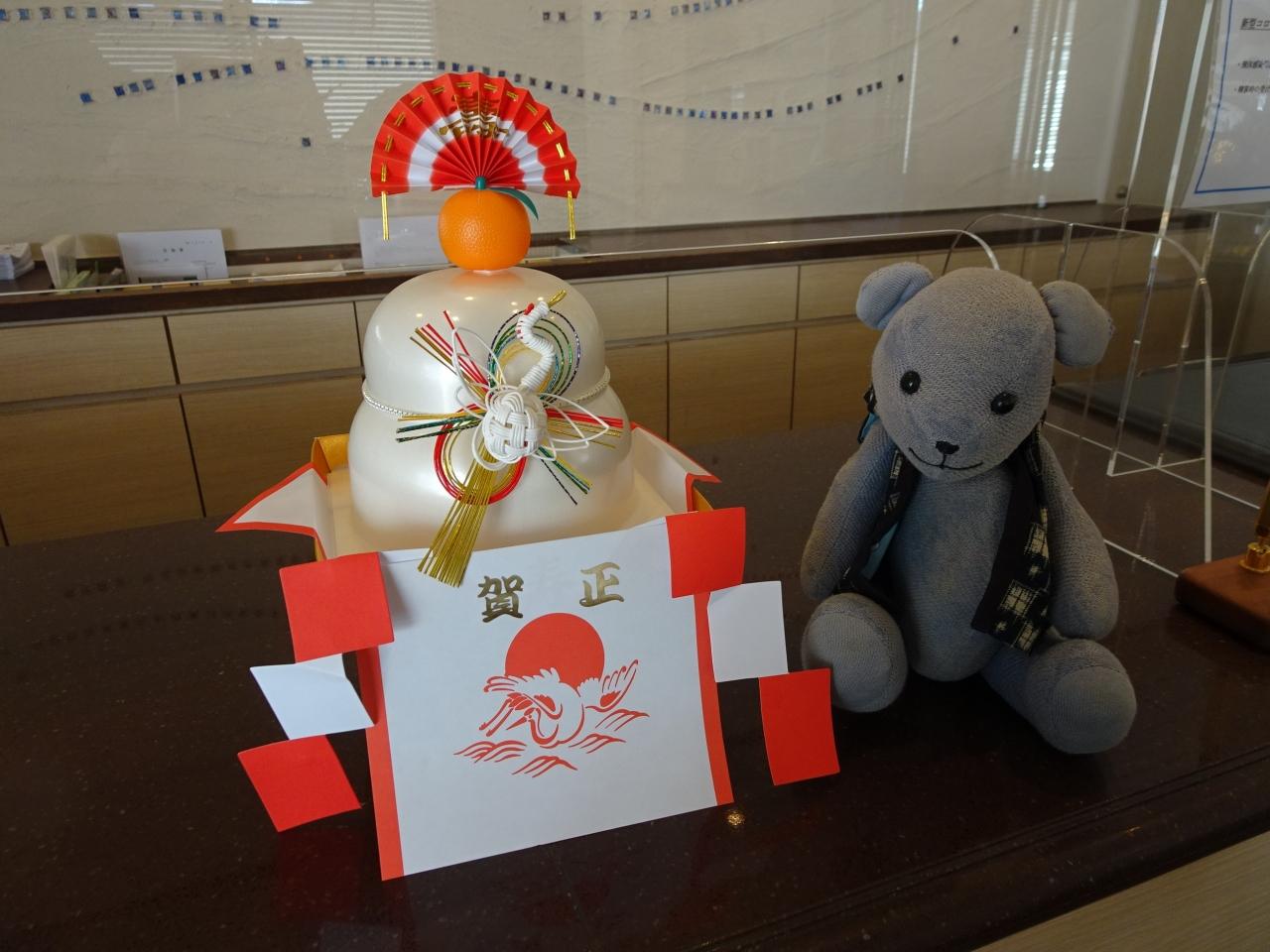 フロントにはアクリル板に鏡餅。
