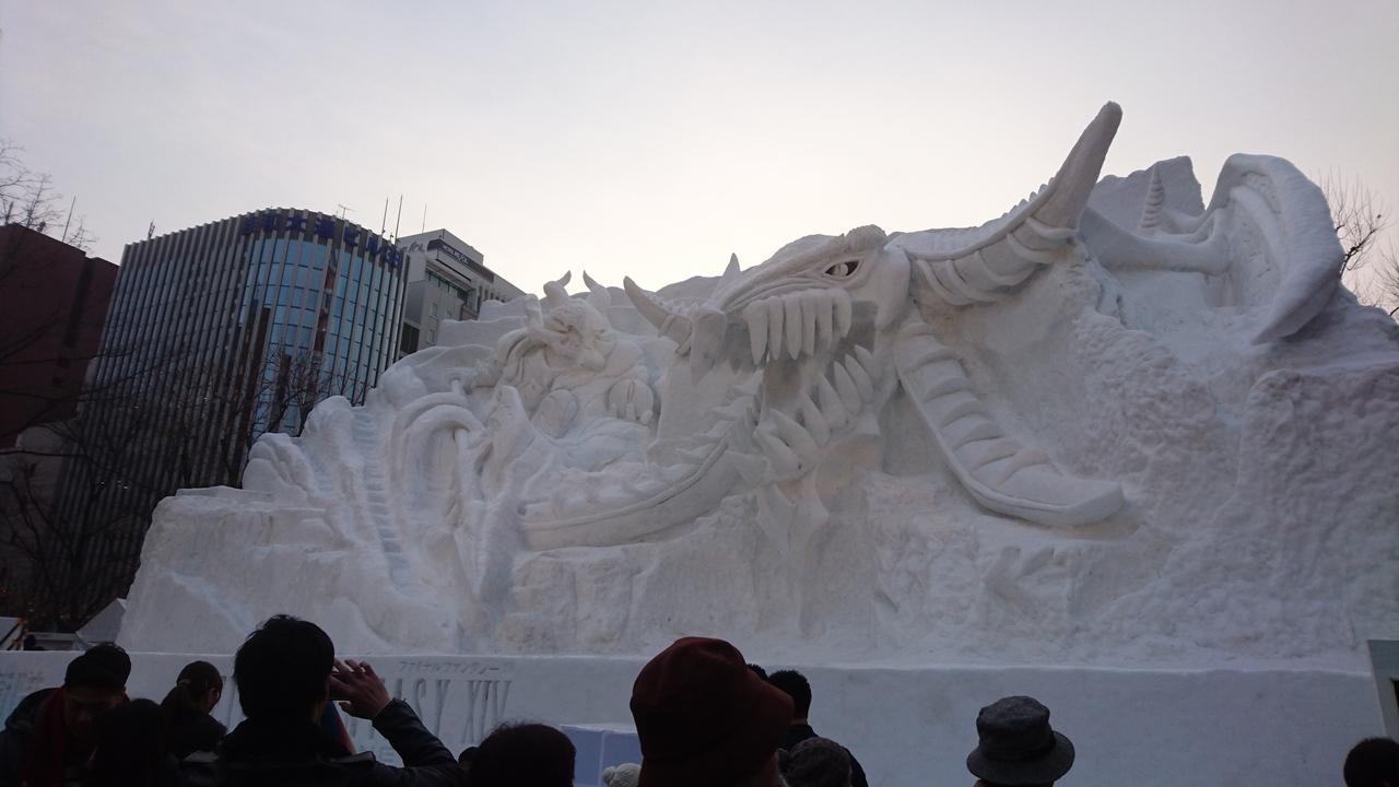この年の雪まつりはファイナルファンタジーのプロジェクションマッピングが作られました。