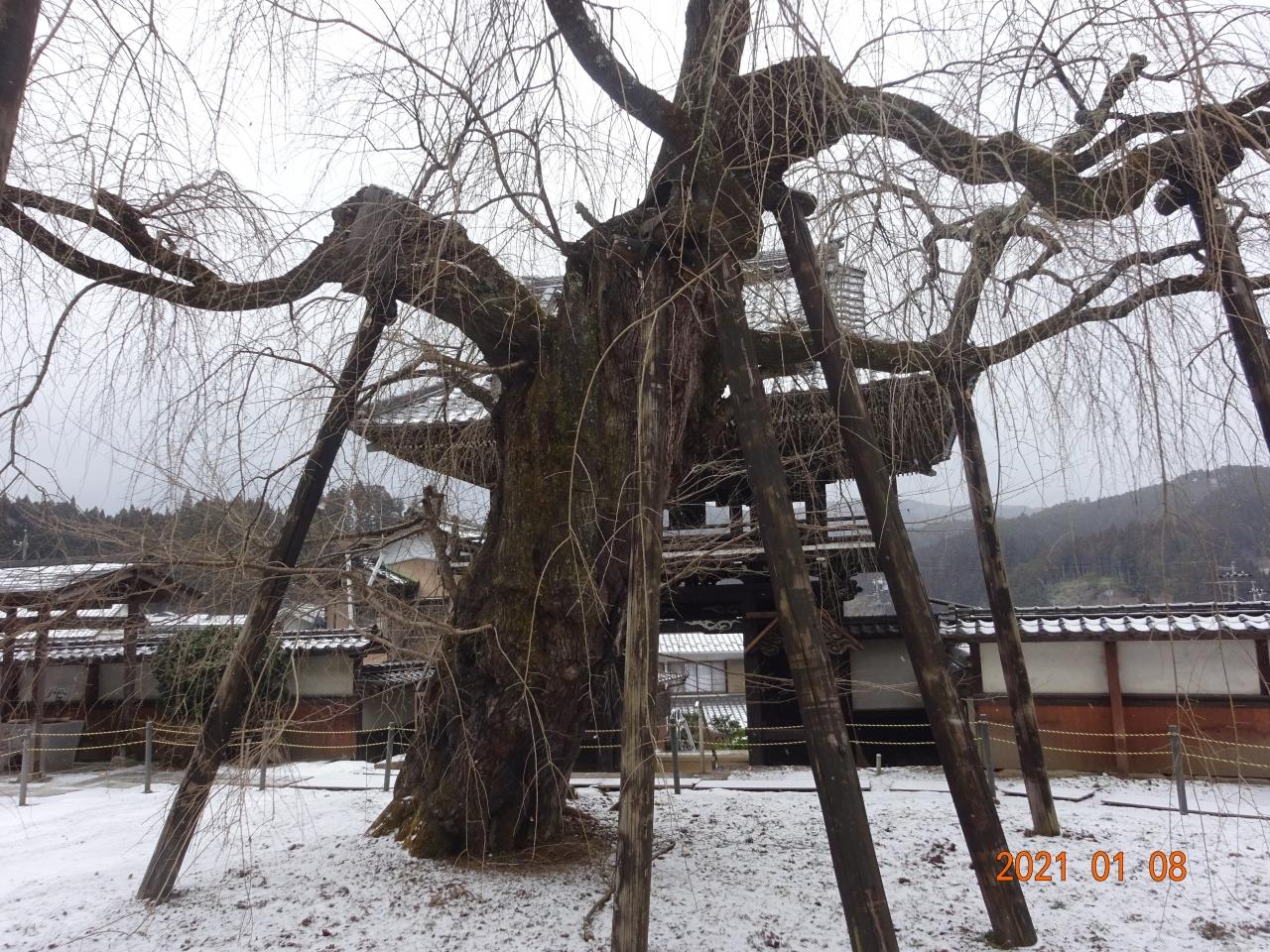 瑞龍寺の山門をくぐって庭先にしだれ桜があります