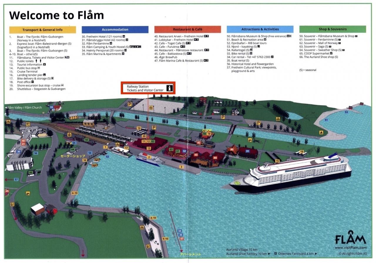 このバスはグドヴァンゲン、フロム、アウルラン間を結ぶようですが、途中フィヨルドのクルーズも入っているようです。グドヴァンゲンとフロム間の最新の観光船が描かれています。