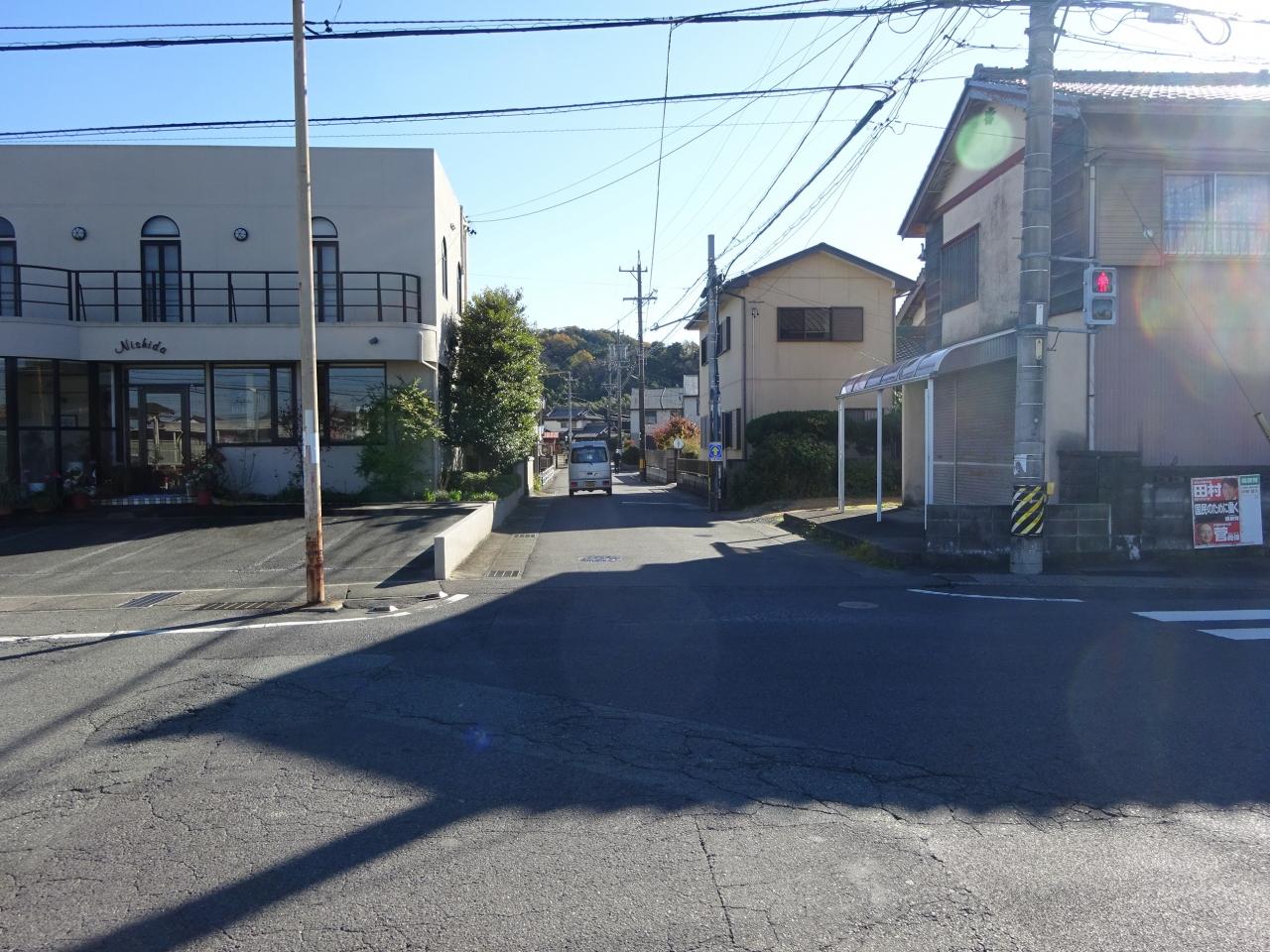 駅前の交差点からまっすぐ延びている、この道を歩いて行きます。