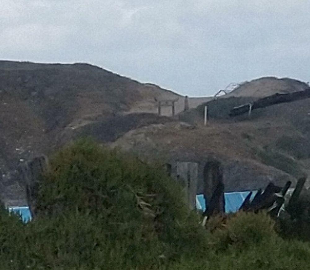 とにかく風が強い!海岸に出たいんだがこのとおり防砂壁?みたいなのがあって入れない・・・