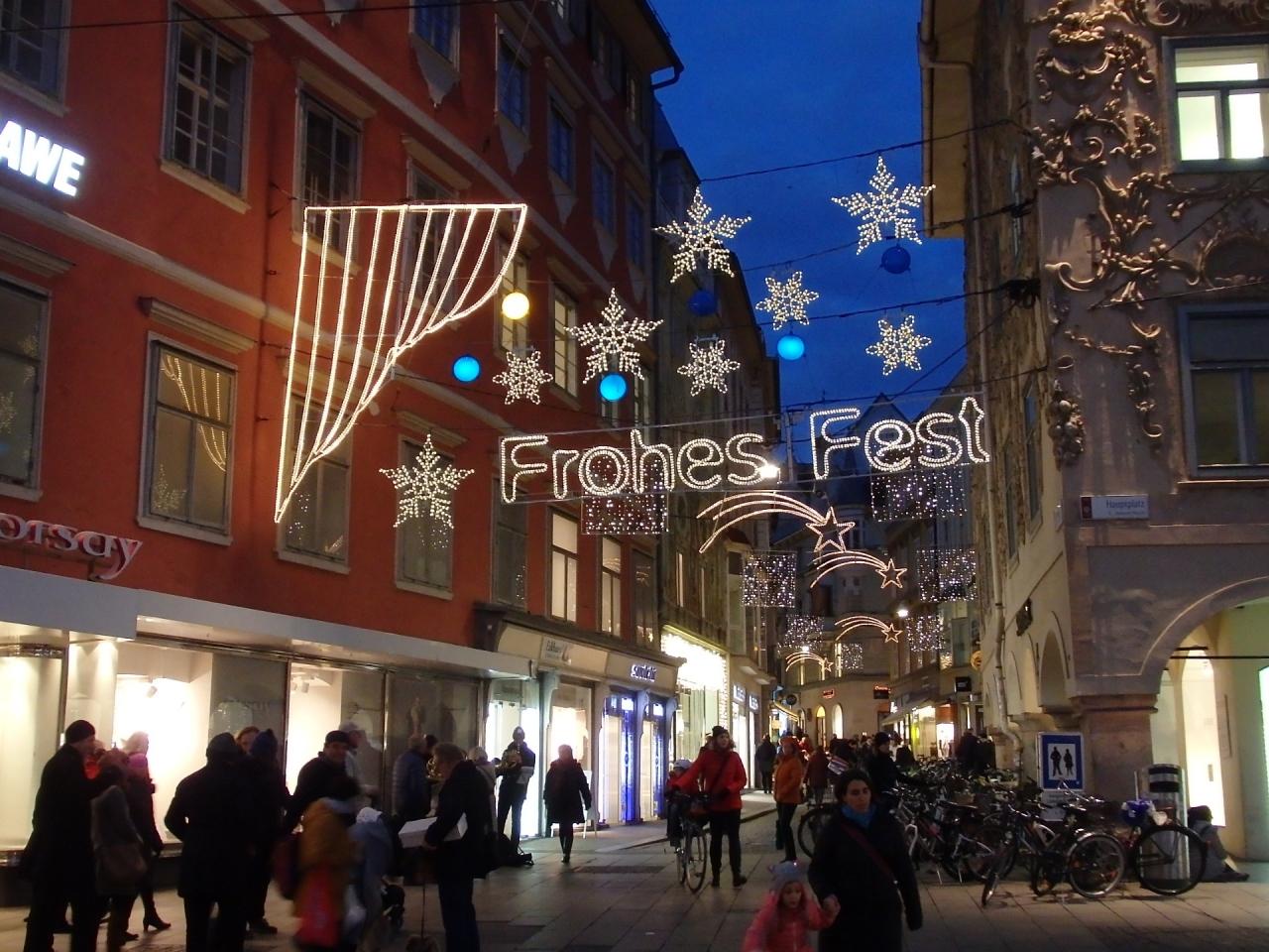 グラーツ市内のクリスマスマーケット開催場所は大小含めて10か所ほどの所で、最大のものが市庁舎が面したハウプト広場のものです。飾り付けの可愛らしいライトアップした屋台を巡り、一人旅でも結構楽しめるひと時でした。