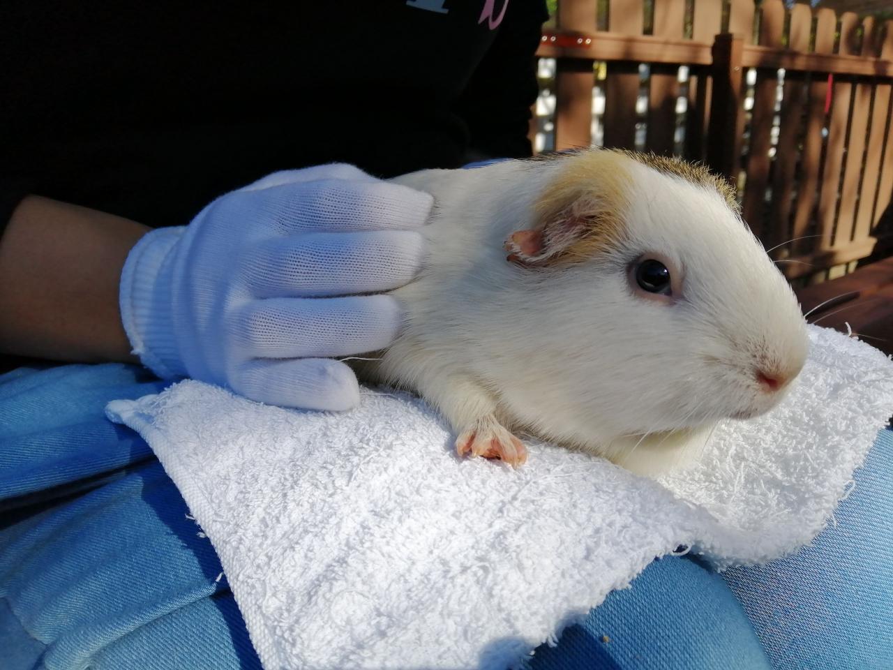 ふれあい牧場でモルモットを抱っこ。