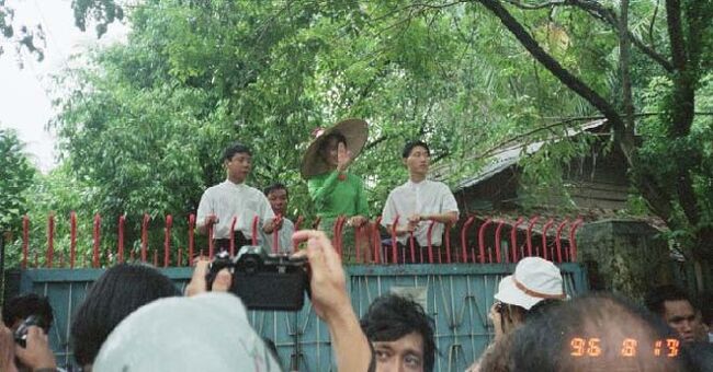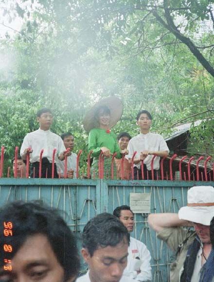 到着翌日、アウンサンスーチー氏の演説が自宅前で行われるということで同じ宿の日本人旅行者とタクシーでインヤー湖畔へ向かった。