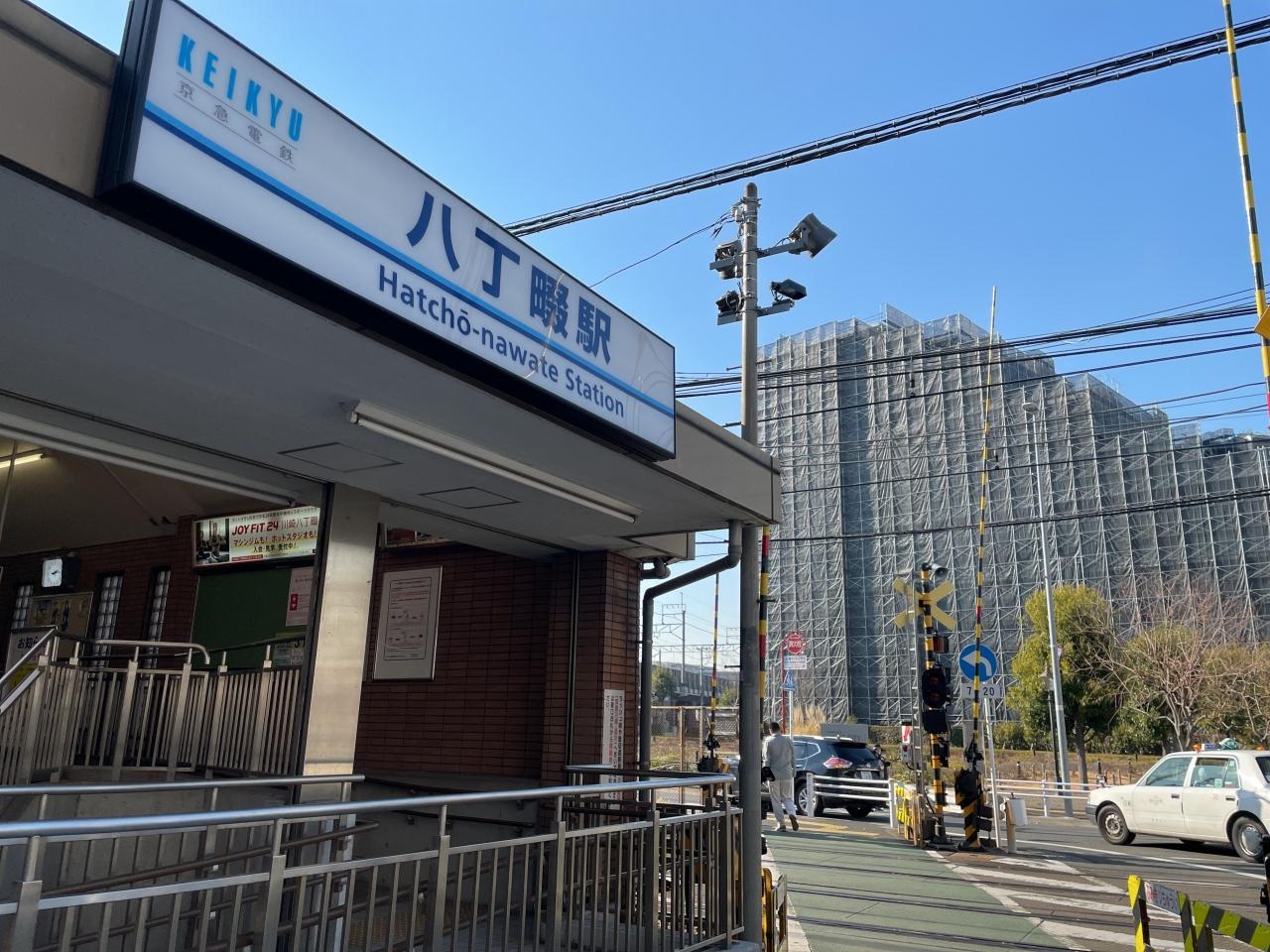 京急鶴見駅に差し掛かった。高架化をくぐって再び線路の南側へ。 -