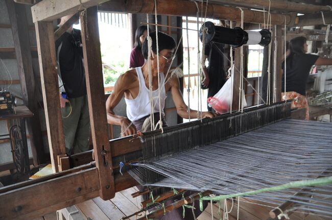 ここでロンジーを編んでいる。一着作るのに三日かかるらしい。