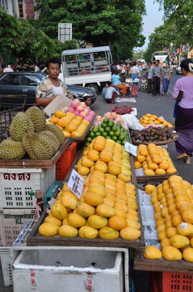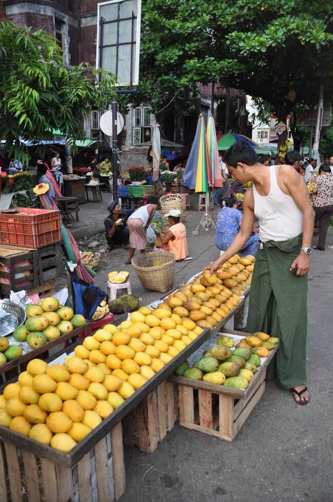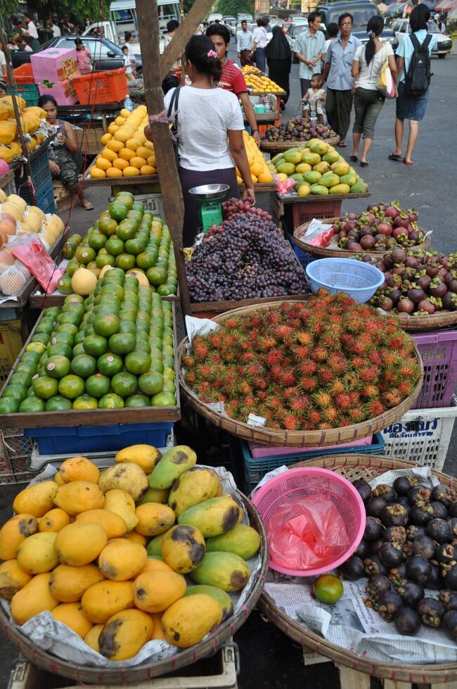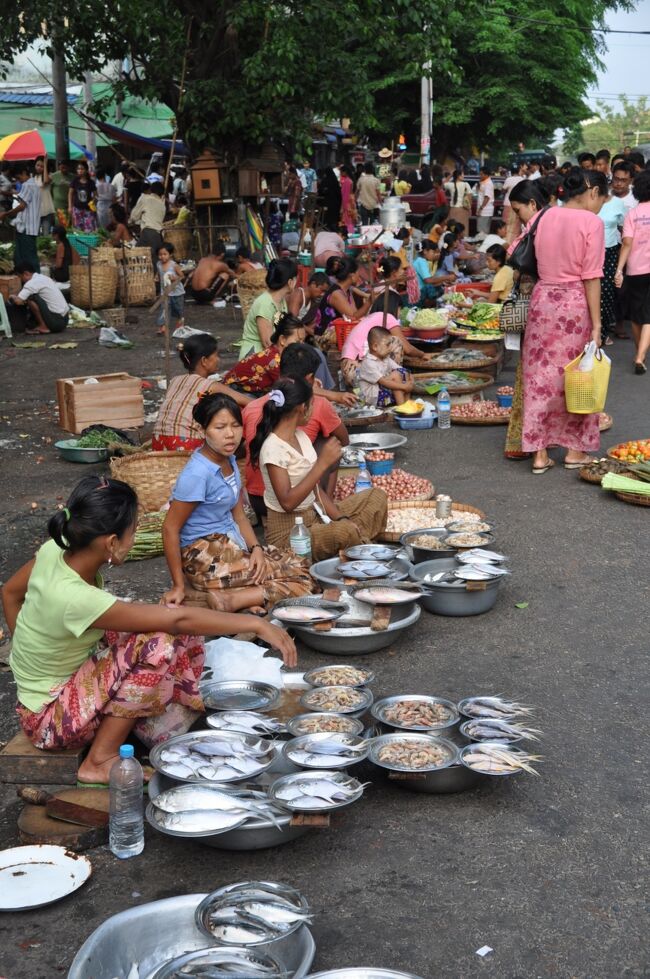 ヤンゴン中心部では夕方にも市場が開かれていて魚介類も豊富に売られている。