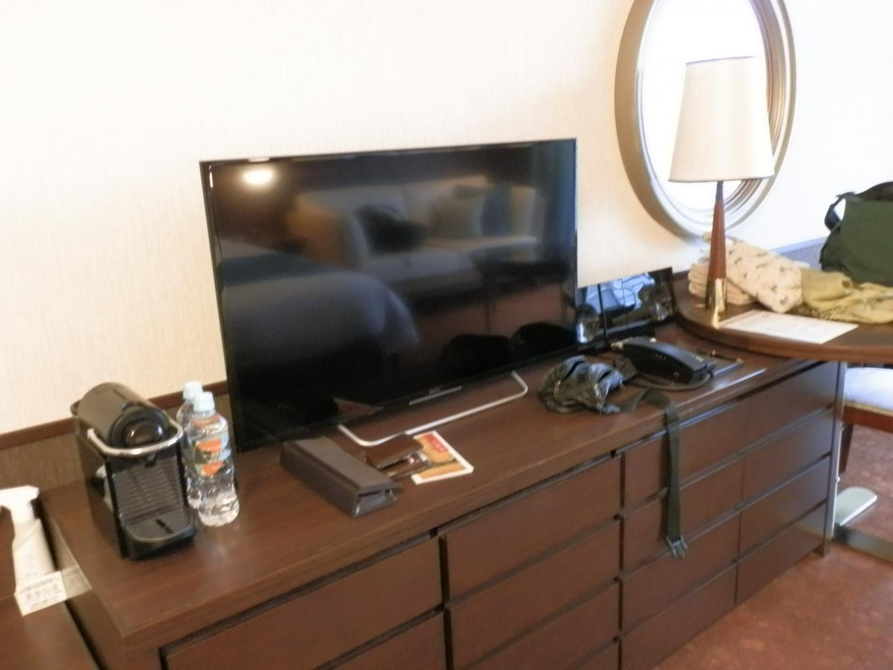 ツインルームの室内です。ベッドから見た場合、テレビの画面サイズは丁度いいサイズでした。
