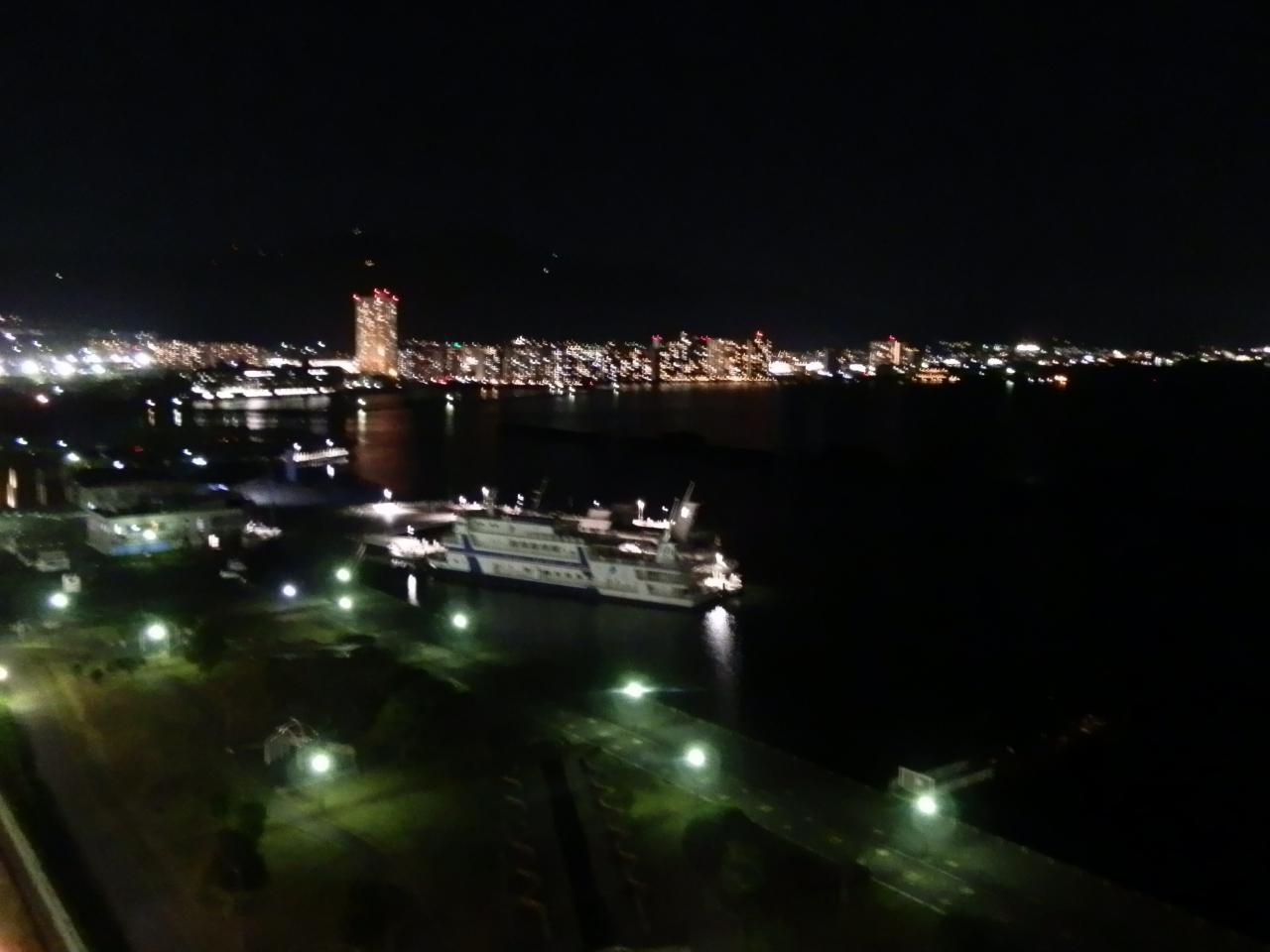 ディナーが終わり自室に戻りました。窓の外を眺めると浜大津の夜景がとても美しくシャッターを切りました。眼下には大津港に停泊する「ビアンカ」が見えました。明日は「メタセコイア並木」に向います。