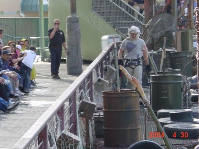ウオーターワールド:開園前ですが観客もホースで水をかけられます。