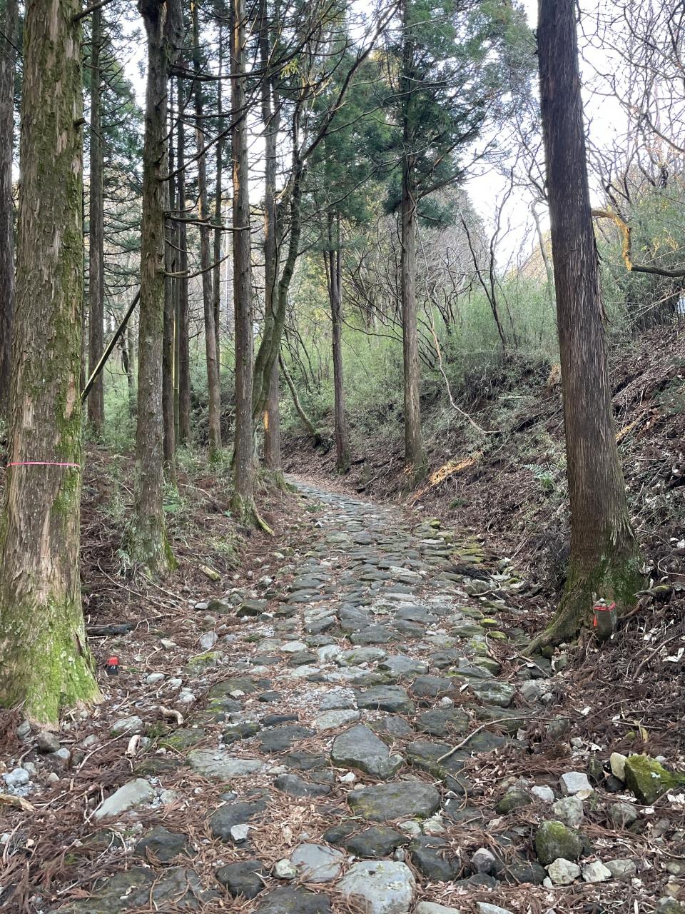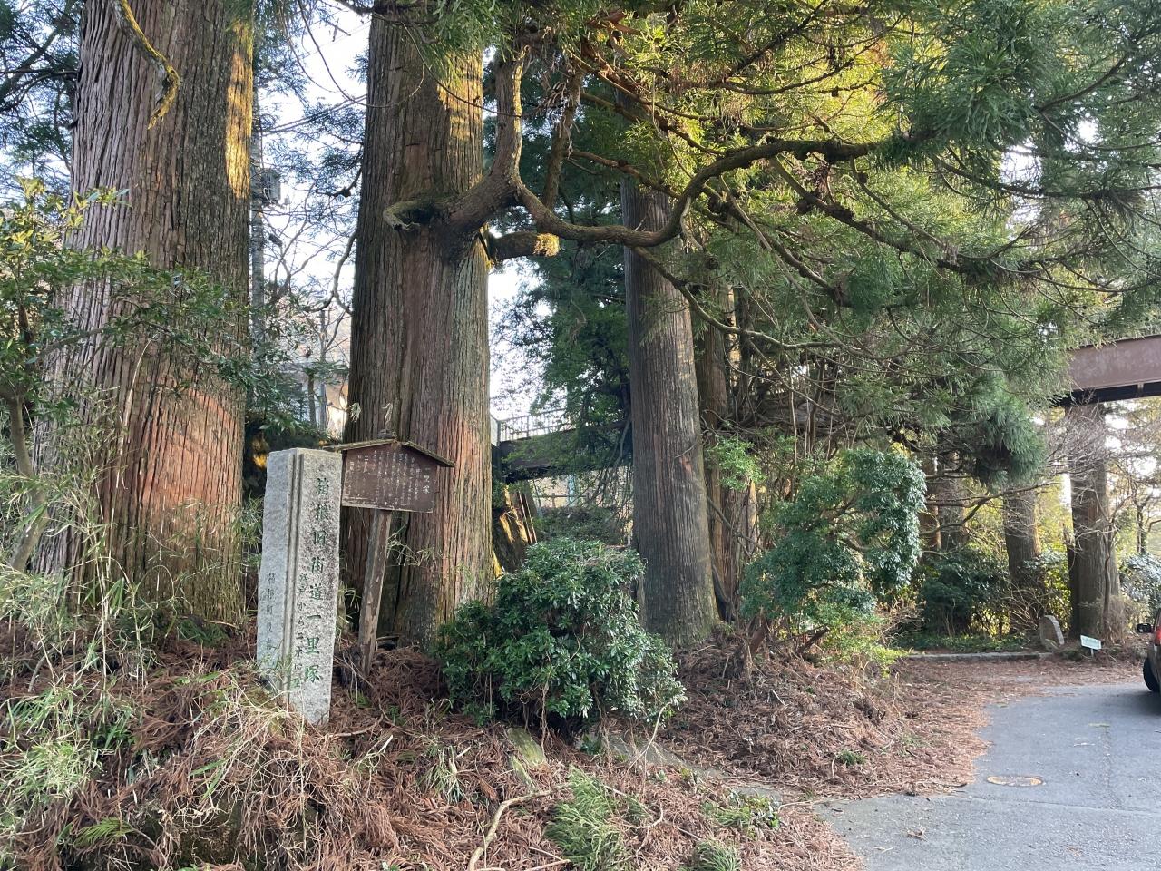 旧街道を進む。鳥居は箱根大天狗山神社のもの。