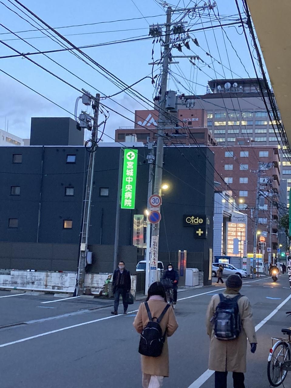 さて、目的地はあの病院の前ぐらいです。